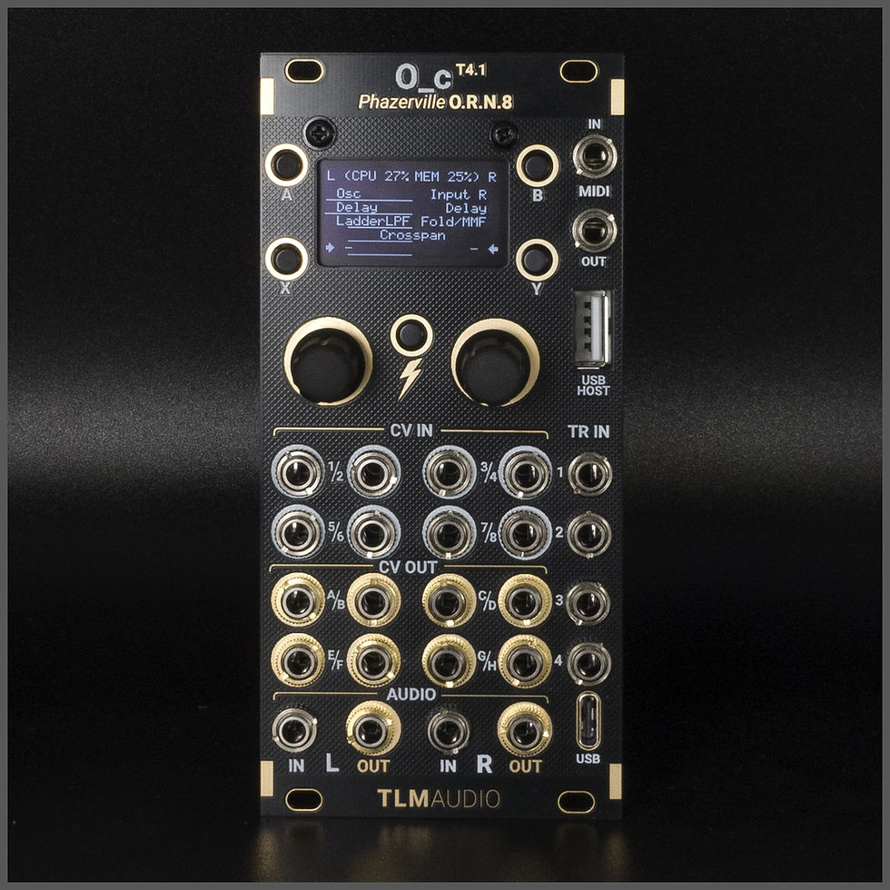 All voices have individual trigger inputs (D. TRIG is normalized to the other trigger inputs) and individual outputs and are also summed using an internal mixer at the MAIN output. The volume of each channel can be changed with the volume pots. Loudness LEDs indicate when a voice is close to clipping.